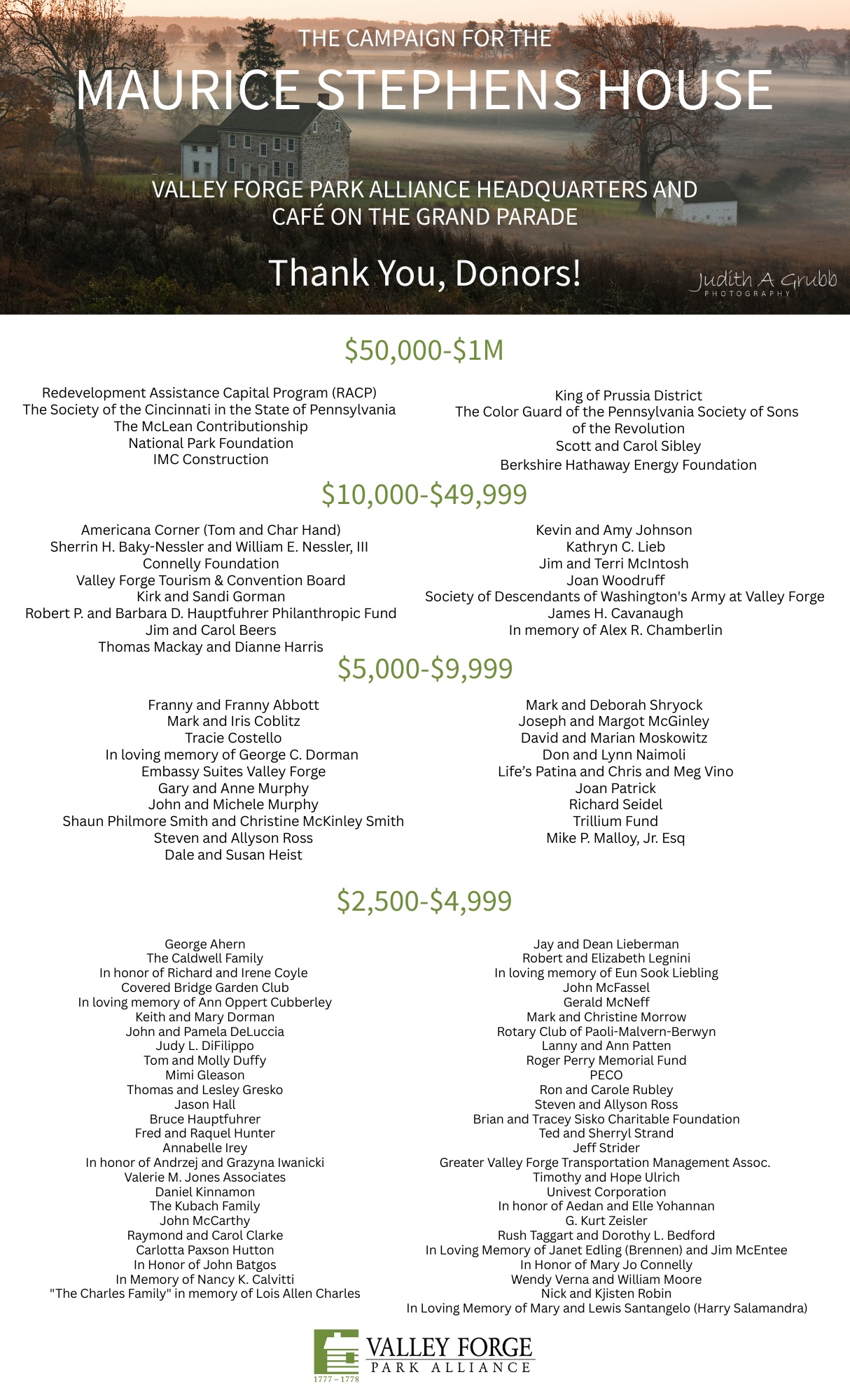 Names reflect gifts over $2500, qualifying for the donor wall